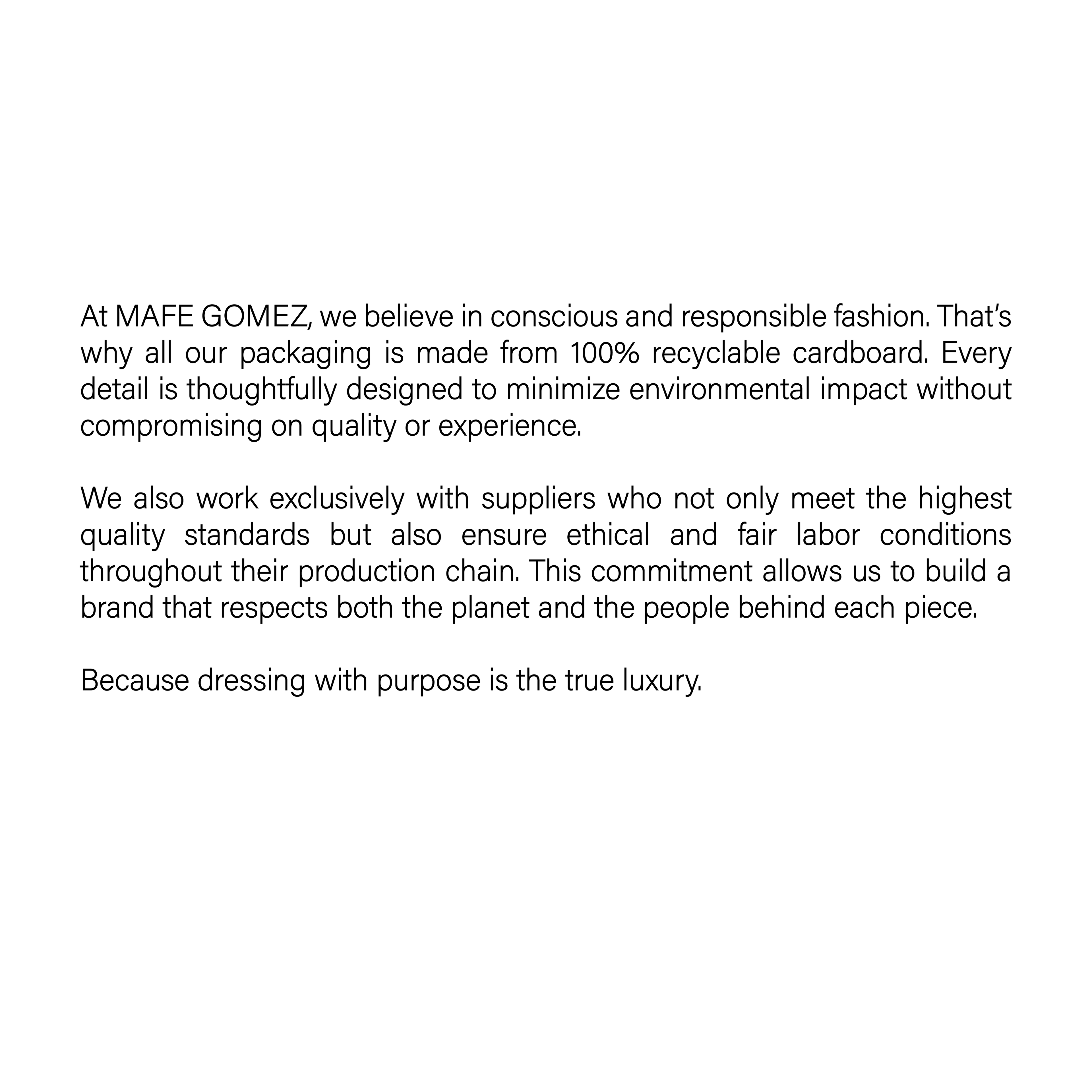 Each collection is produced in limited editions using responsibly sourced fabrics, including high-quality deadstock. We only introduce new textiles when they embody sustainability — artisanal, biodegradable, or recycled.